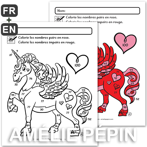 Colorie les nombres pairs et impairs - Licorne