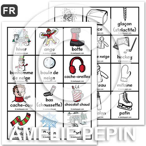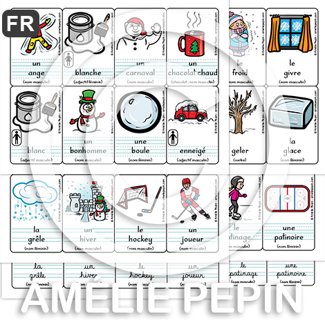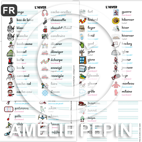 L'hiver - Liste de 66 mots illustrés (script et cursif)