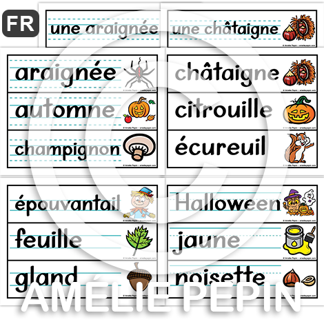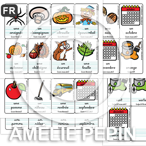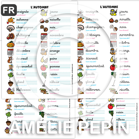 L'automne - Liste de 27 mots illustrés (script et cursif)