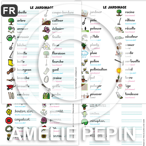 Le jardinage - Liste de 72 mots illustrés (script et cursif)