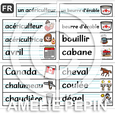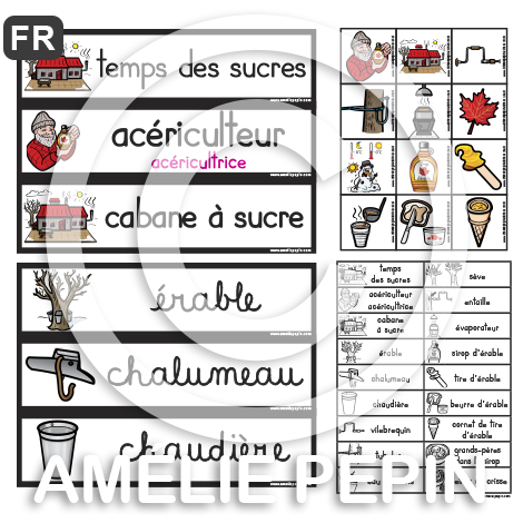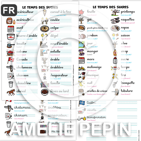 Le temps des sucres - Liste de 48 mots illustrés (script et cursif)