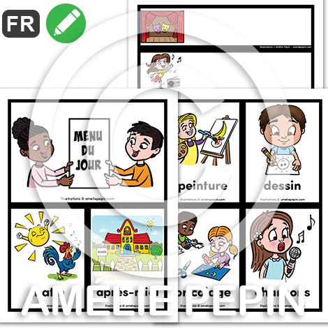 Alimentation Animaux Anniversaire Château (Moyen Âge) Cirque Corps humain Couleurs Créatures légendaires Dinosaures École Émotions Espace et planètes Famille Ferme Fête des Mères Fête des Pères Figures planes et solides Halloween Insectes et bestioles Jardinage Jungle et zoo Maison Mer et monde marin Météo Monde polaire Moyens de transport Musique Noël Pâques Pirates Poisson d'avril Pommes Saint-Valentin Saisons Sports et Olympiques Temps des sucres