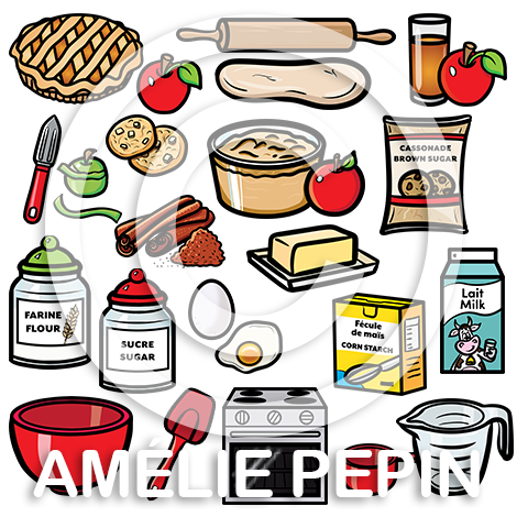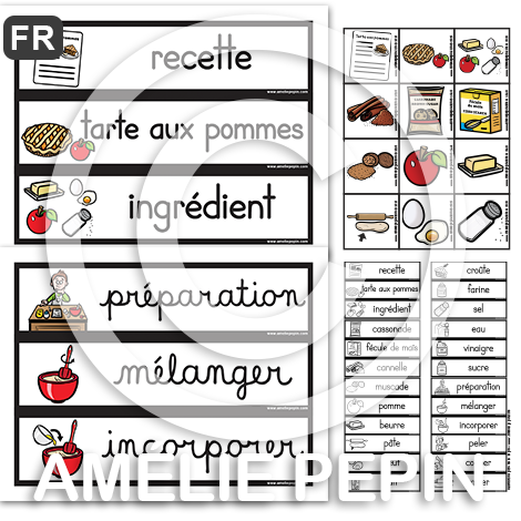 La tarte aux pommes - 42 mots illustrés - Script et cursif