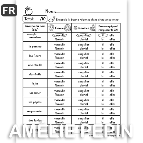 Pomme - Genre, nombre, pronom qui remplace le GN