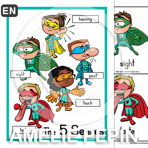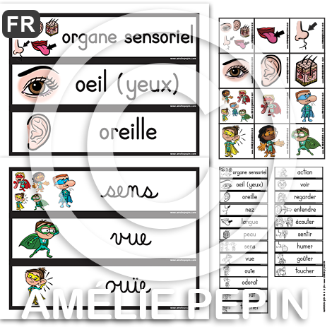 Les cinq sens - 21 mots étiquettes - Script et cursif