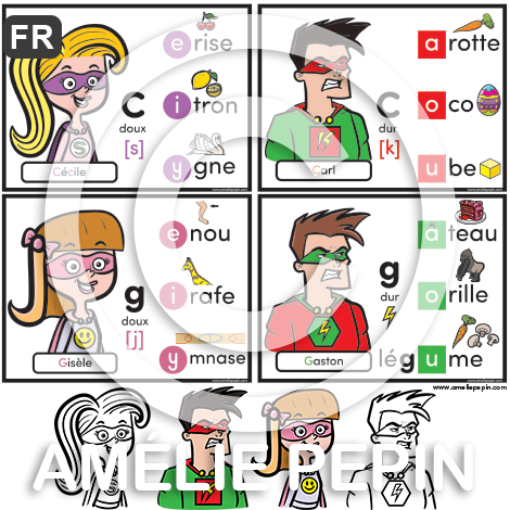 C doux/dur et G doux/dur, Super-héros (affiches + pictos)