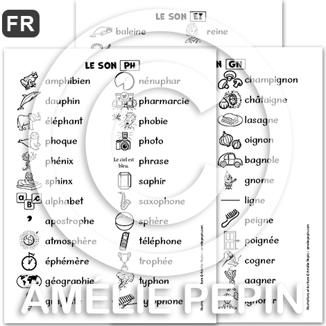 Les sons EI, GN et PH - Liste de 70 mots illustrés