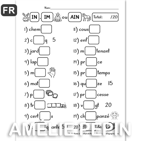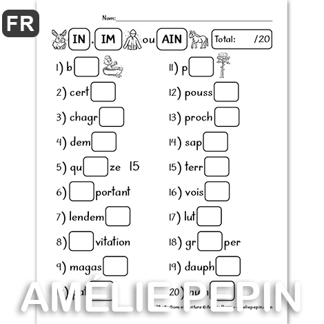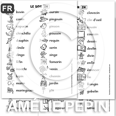 Les sons IM et AIN- Liste de 66 mots illustrés